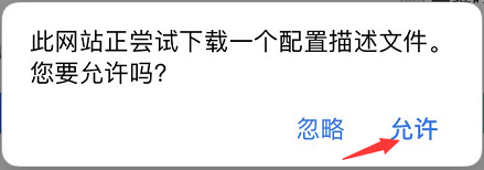 步骤1:点击上方的"苹果下载“按钮”,选择“允许”下载安装文件